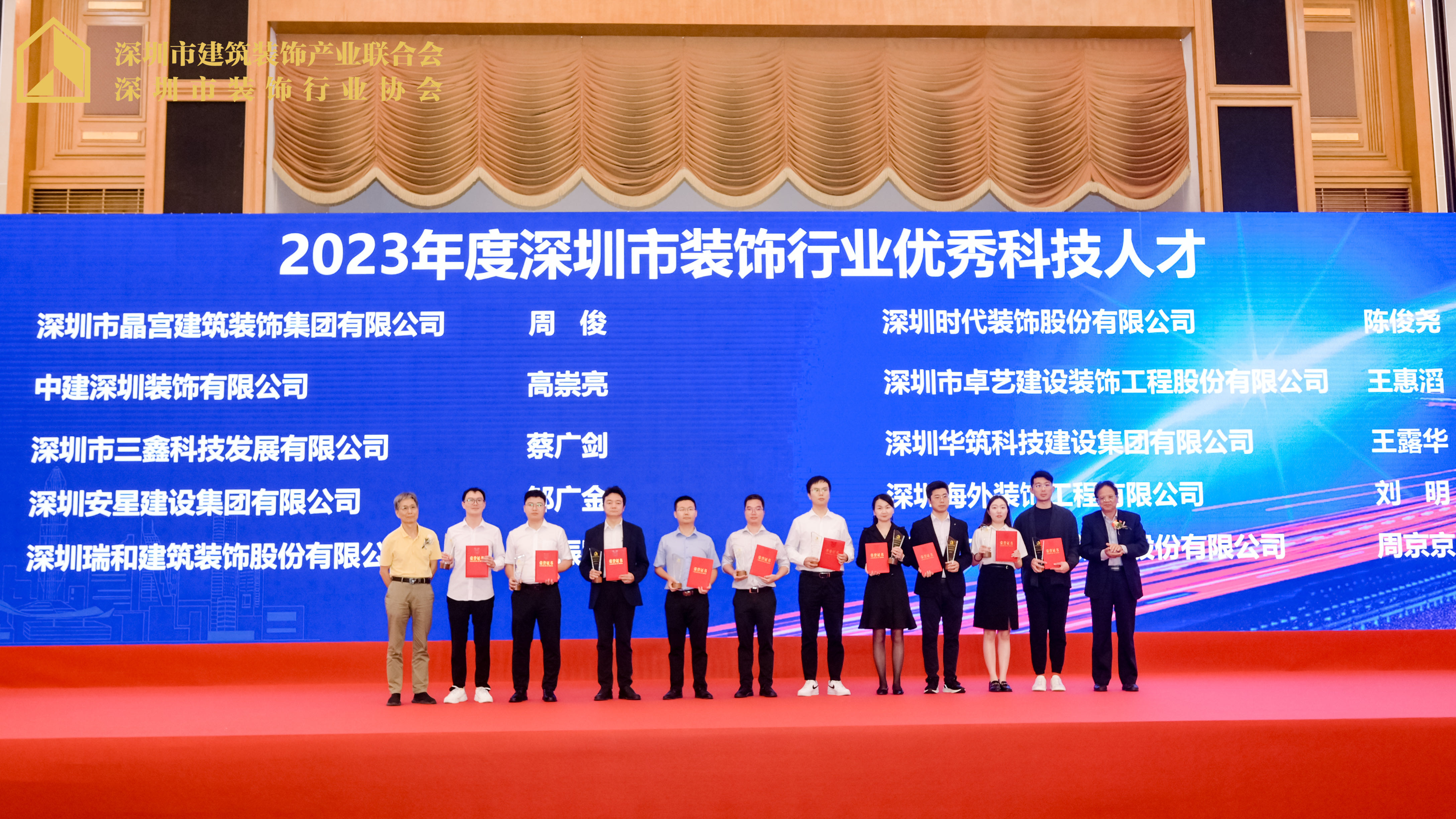 在此次盛典中,瑞和股份技術(shù)研發(fā)中心李振鵬同志因其卓越的科技研發(fā)成就,被授予“2023年度深圳市裝飾行業(yè)優(yōu)秀科技人才”榮譽稱號。